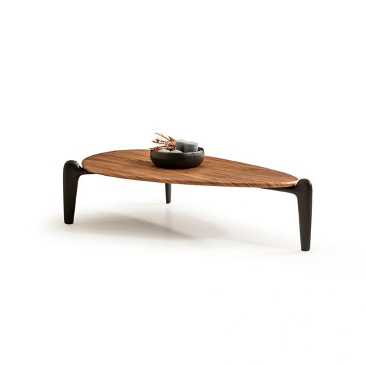 Akışkan çizgilerle gelen heykelsi bir duruş: Pena Orta Sehpa. Doğal ceviz kaplama yüzeyi, uzatılmış Reuleaux üçgeni formuyla sıradışı bir geometri sunarken, zarifçe kıvrılan kenarlarıyla yumuşak bir akış sağlar.