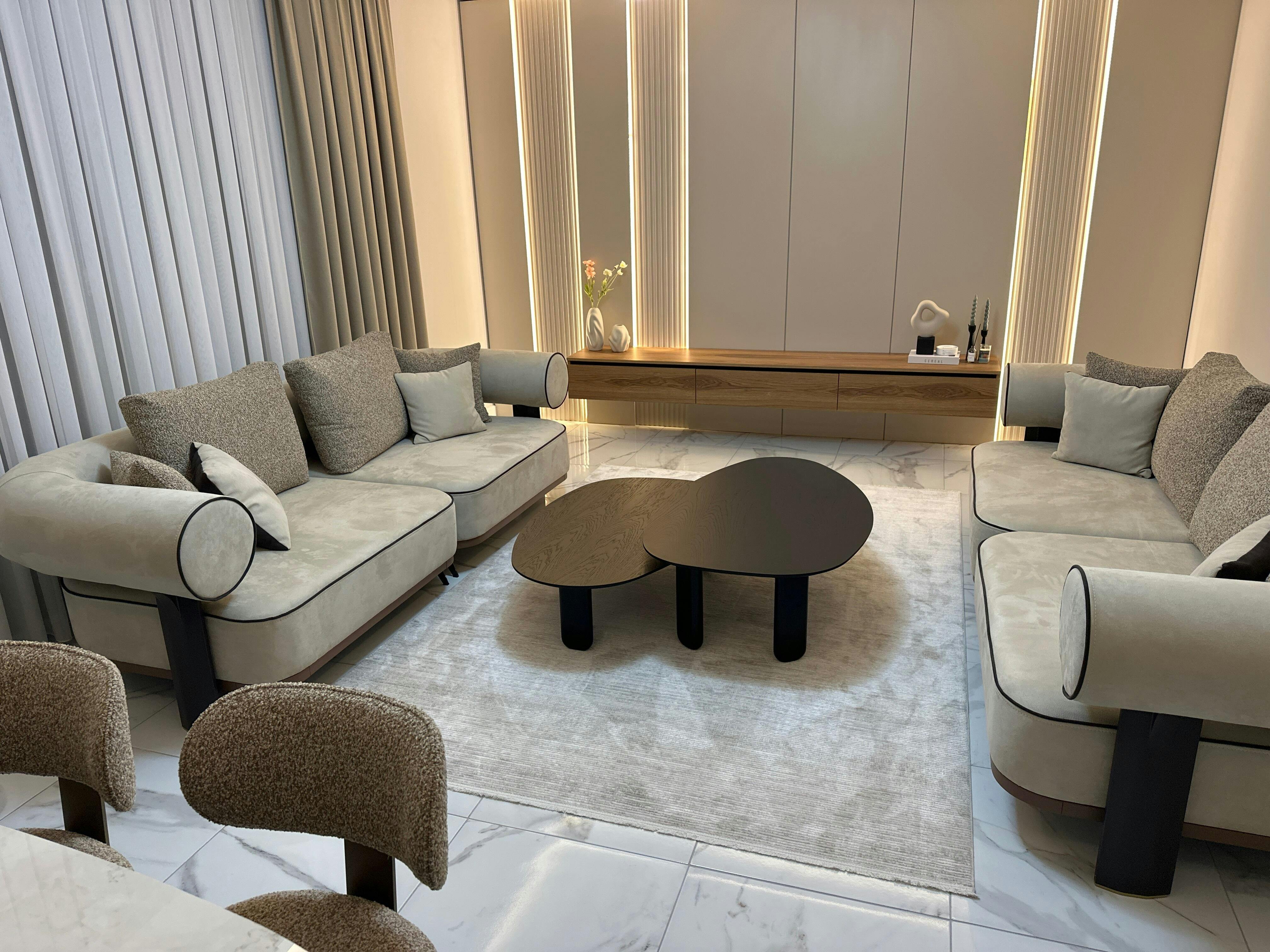 Altındaki üç siyah ayak sehpanın cesur yapısını dengeleyen sade ve net bir taşıyıcılık sunar. Durağan ama dikkat çekici bir varlık gibi mekânda sessizce öne çıkar.